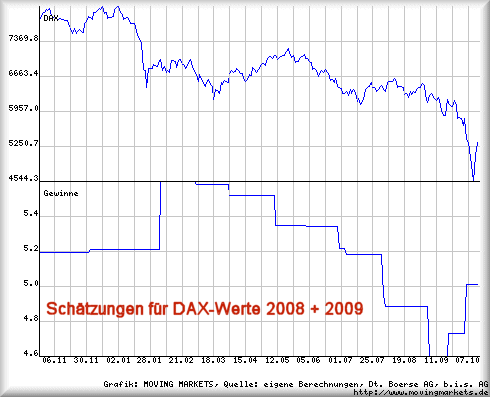 Das Gewinnwachstum ist der Durchschnitt der DAX Werte, Basis sind die Schätzungen für 2008 und 2009 mit Stand von Anfang Oktober.