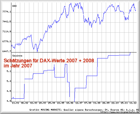 Analysten-Schätzungen von 2007 und 2008 für alle DAX-Werte (Durchschnitt):