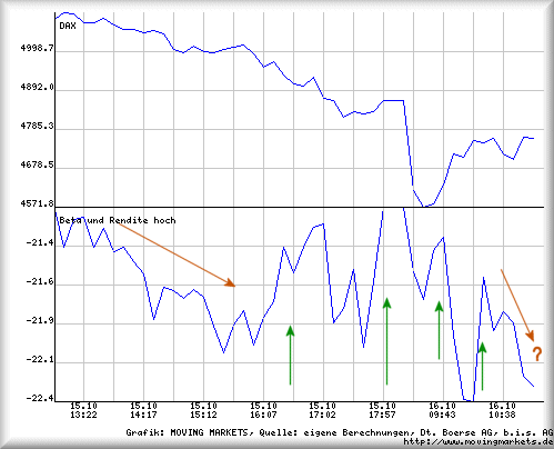 Oberhalb von 4.700 hielten sie sich jedoch zurück, es fehlen neue Anschlussaufträge. Deshalb gut möglich, dass der DAX noch einmal in Richtung Tagestief fällt. Geht er nicht mehr in die Knie: um so besser