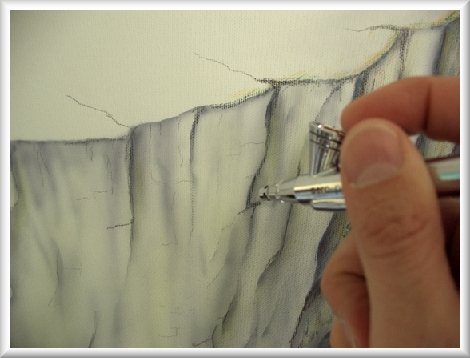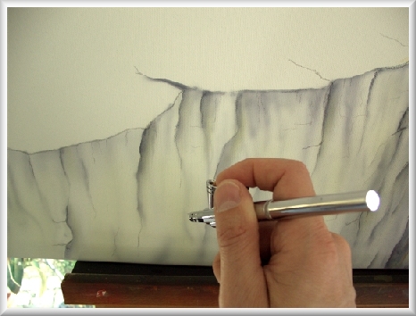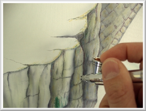 Die Miniatur-Sprühpistole im Einsatz