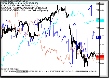 So habe ich in meiner eSignal Software für die USA geprüft, ob die blue chips in der Nasdaq und im S&P die letzten Tage bevorzugt gekauft worden sind. Dies war in der Tat der Fall.